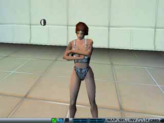 AOはキャラクターごとにアパートの個室みたいなのが割り当てられています。これはその中ですね。家具とかも置くことができるそうです。 水着を買ってきたので、さすがに町中ではまずいと思い部屋の中へ(w。水着にも何十種類もあるのがAOです。ついでに感情表現が豊富なのもAOですね。 |