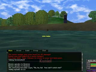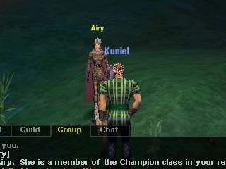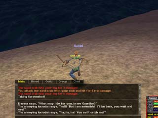 こんな顔の芋虫を狩っていると、EverQuestで長い間一緒に戦ってきた仲間達と連絡を取ることができました! どうやら首都でギルド創立イベントが催されるようです。 |