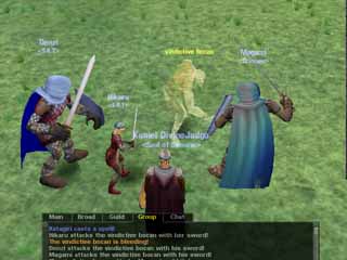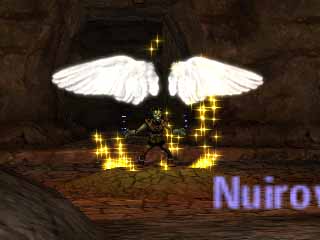 Spraggon Nix様が降臨! じゃなくて、何かのBuff魔法だそうです。他のRealmだとみんなこんな感じに補助魔法をかけてもらえるそうで。さすが開発が一番後回しにされているHibernia、モンスターは使えてもプレーヤーは使えないようです(号泣)。 |