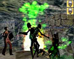 Befallenをうろつく骸骨どもを一網打尽!左に写ってるのはChihayaさんですよ、今の超格好良い威厳溢れるリーダーだけど可愛い聖騎士様って感じとは違ってかなり初々しいですな(笑)。 この後確か全滅してCRに必至で画像この3枚だけです、ごめんなさい(汗)。取り敢えず、「油断した時が一番全滅しやすい」ってのはこの時の全滅で体で覚えました。へへ。 |
