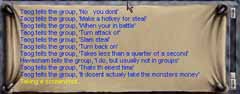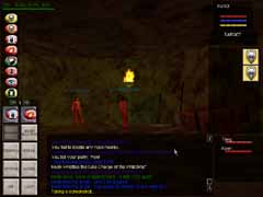 Kuniolで妖精大陸出身者が通うClanCrushBoneというOrcの砦で戦っていた所、Taogという変な外人さんとパーティーを組みました。どうやらプログラマーだそうで、そのタイピングの早さはもはや人間の領域越えてたですよ。こういう感じにチャットウィンドウが一瞬で青に変化します(笑)。しかも日本語まで使えます。マシンガンタイピングです。 |