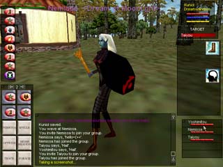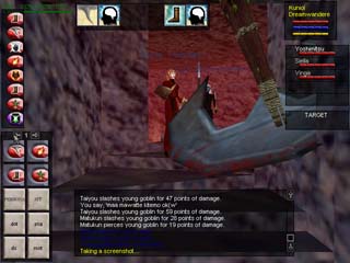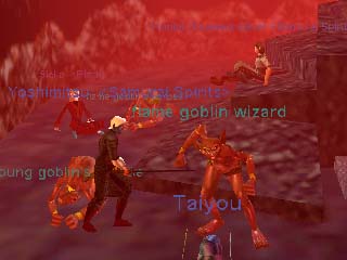 Scimitar、そしてMoltenCloakも入手せよ! ということで、遂にこの時が来ました。SolAに行ってGnomeを虐殺して参ります!集った勇士は、Nemissaさん(左の写真)、Yoshimitsuさん、そして「チビはHalfLing以外許さない」とするTaiyouさん! |