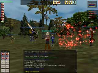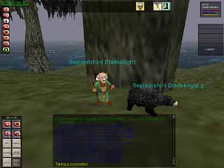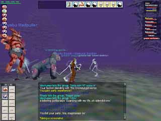 ということでYoshimitsuさん(今回はMashumer)、Hadzukiさん(実際にはKuniolが無理矢理頼み込んで来てもらったShiinaさんが操作)に手伝ってもらって、強盗殺人開始です! Gnome 60lvl Druidなので、熊のペットまでついてきます。 |