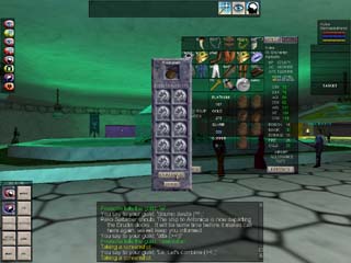 Erudinの魔法使いギルドの噴水の側に最後のコインが落ちていました。これで、全部のコインが集まったですo(^^o)(o^^)o。 これをポーチに入れた後、コンバインして、一つのコインにします。 |