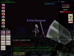 戦っていたら、DarkElfの女の子の闇騎士様が!!格好良いですねぇ。Kuleaの騎士様じゃまだよ〜〜。 |