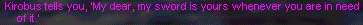 | my dear, my sword is yours whenever you are in need of it.・・・格好良すぎる(w。愛の告白でぃすか!!?強化魔法かけてあげた外人さんのお礼の言葉かな。たかだか強化魔法でここまで言うですかねぇ(^^;)。こういうロールプレイ楽しめるのも、DarkElfならでは? |