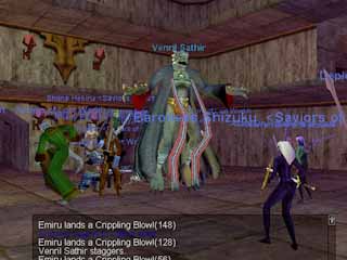 僕が2ヶ月目を離していただけで、EQの世界は変わっていました。なんと、今の流行は、EnchanterのAE Stunで数十匹のモンスターをはめた上、WizzardがAE DDをぶっ放し物凄い勢いで経験値を稼ぐ方法が確立されているというのです!今回はhafu-なKirieさんに誘われて、それに参加させてもらうことになりました!!