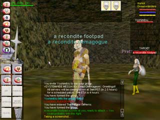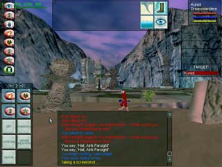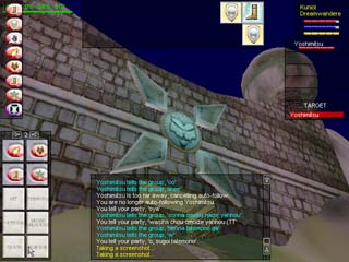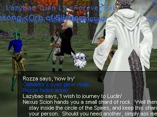 拡張パック、Shadows of Luclinが発売され、月の世界LuclinへYoshimitsuさんに誘われて観光に行くことにしました! Luclinへ行くには、各地にあるWizardのTeleport Spiralにいる魔法使いの力で飛ばしてもらうしかありません。この叔父さんに「Luclinに行きたーーい!」と言うと、石ころを渡されます。そして魔法使いの叔父さんが15分おきに |