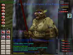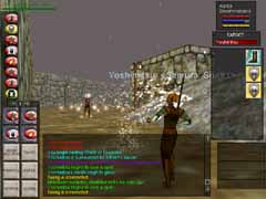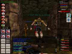 取り敢えず、事前のBuff&危なくなったらFac Down覚悟のHealをして加勢という事で戦闘開始!できるだけFreePortのFactionは下げたくないですけど(w。ShadowKnightの定番攻撃、Darkness(一番上の写真) > Fear(横の写真) > 攻撃攻撃 > Lifetap(上の写真)を繰り返しまくってMilitiaガードのHerkinさんをちなします! |