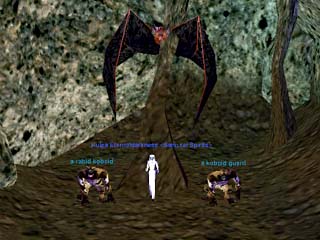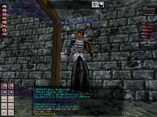 前回は、Koboldの王子様を倒すところまで行ってたけど、これはそれの後のお話だよ :)。弱い王子様を倒して、今度は王様を求めて歩き回ることになったんだけど、その途中で「故郷に新ダンジョンあり」と聞きつけたのか、レベル60のErudite ShadowKnight(GraveLord)がいました。格好良いですね(^^)。 |