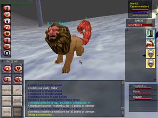 まさしくマンティコーアです(>_<)/。レベル38くらいから見て/con白だったのですが、強いのなんのってw;;。どうやら、Velious系のクエストモンスターのようです。 |