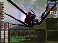 さて、狩り場のOmenまで行かなければなりません。Kunarkは非常に凶悪かつ危ない所で、ほとんどのFieldZoneがレベル35以上の凶悪なモンスターの巣窟です(T_T;)。ここ、FirionaVieも例外ではありません。HighElf達の入植地を一歩出れば、そこは見たこともない化け物共の領域。 Omenへ行く途中にはこういう人の上半身と蜘蛛が合体したRangerタイプのアホみたいに強いMobがたむろしている川を上って行かねばなりませぬ(滝汗)。InvisiないClassの人はどうするんでしょうか・・・。 ちなみにこの蜘蛛は女で、男タイプもいます。 |