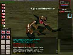 Omenに着きました!これが、噂の超美味しいGoblinです。Kunarkが混乱に陥った時に他の大陸から移住してきたGoblinの子孫です。Antonica等にいるGoblinとは外見が全然違いますね〜。地域変種でしょうか。FFのゴブリンでしょうか。Soloでも余裕だぜ、がはは。 |