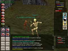 えっと、えへへ、Yoshimitsuさんがまたやってくれました。Omenで死んだですよ。ネタになる人ですね(w。 EvilRaceはOverthereというDarkElfの入植地からKunarkへ進出するのですが、そのOverthereという所は超激悪危険地帯!KunarkのEvilの戦士は死んだらそこへ戻るように設定するのが普通なんですが、Invisi無しでOverthereを抜ける等、ほぼ不可能。さらに、Omenに行くにはFrontierMountainというMountainGiantのいる地域まで抜けなければなりません。このMountainGiantって奴はInvisiを見破るので、できればSpirit of Wolfで足を早くしておきたい所です。 ・・・で、Yoshimitsuさん単独での死体回収はメッチャ厳しいので、Druidな僕がかり出されました(T_T;)。 |