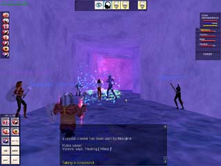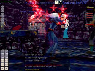 「みんなでCrystal Cavernsに行こー(^^)/。」と誘って、Kirieさん、Vatshuさん、Mashumerさん、Gaonさん、Mimaさん全員がいったんNorthKaranaのWizzardRingに集まりました。 「止まれ!貴様のような奴は生きてるより死んだ方がマシだ!」と叫んできて、ガードがMashumerさんを襲っています(@_@;)。 しかし、こんなことには慣れているMashumerさん。あっさり返り討ちにして |