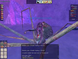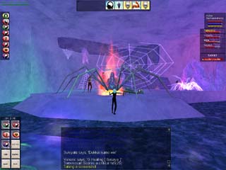 Kuleaの活躍で、無事、女王も退治できました。犠牲となり死んでしまったVenonCさんの魂も安心して天国へ。 女王蜘蛛は性能の良いローブを持っていたりする、なかなか美味しい相手です(^^)。 |