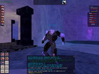 Coldainの町のさらに奥にいるイカを倒していたら、どこからかGeonidという岩人間が現れました。なんでもIntがアップするアイテムのクエスト持ちだとか。良く解らないので、とりあえず倒します(爆)。 |