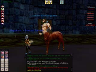 Magokoroさんが何故かWarrior用の装備のクエストをしていたので、ちょっとだけ見学。SouthKaranaにいるケンタウロスは鍛冶の名人揃い。Warrior専用鎧も、彼等に作ってもらうのです。 |