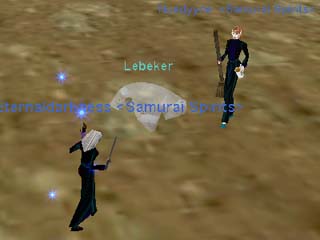 ということで、今日はNuedyyneさんに手伝って貰って私のDefenseSkillを上げるです :)。 とにかく攻撃頻度の高いAirElemental君に殴られまくる私。痛いよう(T-T)/。 |
