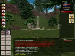 KelethinのあるZone、GreaterFaydewerのBanditキャンプです。悪い邪教WoodElfは死すべし!って事でKuniol一人で成敗しました。DruidはHarmonyという敵のリンクを切る超強力魔法をレベルの低い内から使える反則職業です。即ち一人でキャンプを襲える! 一人でWoodElfの女の子の肉をモキモキ食べながらYoshimitsuさんと同じように一人で座り込むとは、僕も墜ちたものです。 |