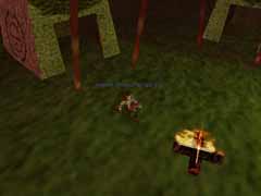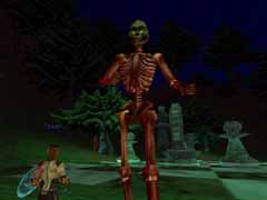 こんな感じに、チェスの駒としてスケルトンが配置されております。ビショップとかキングとか色々。でかいです。隣にいるのがWoodElfのTakeruさん。ってかマジでかいって(w。この後、ビショップにチャームやらダークネスやらFearやらかけられて敗退。もう二度と襲いません。 |