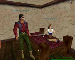 なんか普通の民家があってさらには夫婦までいます。クエスト持ちなんですかね?全然知りません(^^;)。EverQuestって名前の通り、クエストが多いですが、くだらないたわいもないクエストも結構あるみたいですね(^^)。 |