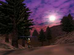 帰りの途中、案の定死にまくりでした(T_T;)。まず、YoshimitsuさんがBarbarianのNPCに殺されました(^^;)。次に僕とVingaさんが変なEvil系NPCパーティーの一段に襲われて死亡。画面が真っ暗になってマジ怖かったです(;´Д`)。これは死体回収後ですね。綺麗な朝日です。 |