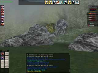MarusuSeruというフィールドゾーンに到着しました。ここで狩りをするそうです。 なお、拡張パックSoL以降、EQは重くなってしまったので、これ以後のスクリーンショットはほとんど最低画質になっています。本当はもっと綺麗なんですよ :)。 |