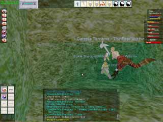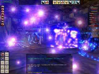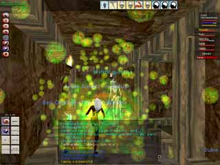 操作方法を確認していると、KisuteteさんからTellが。どうやら、Ventさん、Wadlofさん、Fiorinaさんと一緒に、Luclinで経験値稼ぎをしようと言うのです。 合流して、ShadowHeavenから狩り場へ移行です :)。 それにしても、凄い廊下ですね〜。 |