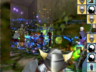 ん!!!訳が解りません(爆)。人数多いと魔法が激過ぎて何が起こっているかさっぱりです。この後、レベル順に二手に分かれ、僕はRogueがDarkElfに変身できるマスクが手に入る事で有名なAss