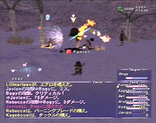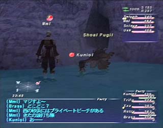 夜になると、衣を落とすというボギーを倒しに海岸へ向かいます。このボギーというのが相当手強くて、その上夜にしか Popせず、さらに衣はレアアイテム。僕がサポートジョブを取った頃は一番激しかったので、プレーヤー間の言い争いも絶えなかったとか。 |