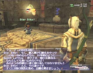 ここでルクスス院長が登場です(`Д´)O。プレーヤーに与えられたミッションは、古代人ジラートが作ったとされるフェ・イン遺跡に設置された最後の護符が機能しているか確かめてくること。 というか、ルクスス院長、何時もフェ・インで研究してるんだから、あなたが確かめて来r(略)。 |