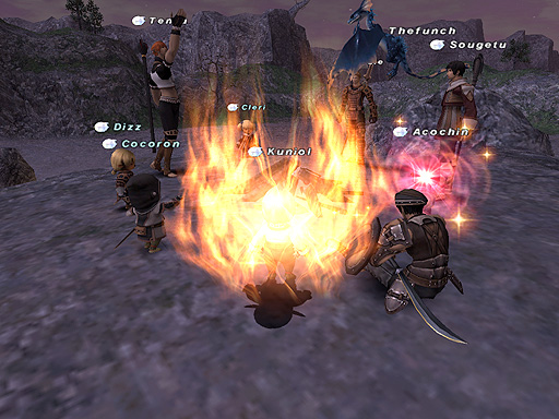 Salt of the Earthで再びイベントです!今回は、ガルガンソーセージを作りながらみんなでお話をしよう、という、なんともナイスな企画です!Dizzさんは素晴らしいお方です。 ガルガンソーセージは、大羊の肉を南グスタベルグの山の頂上にある焚き火に突っ込んで、ヴァナ時間で1日待つとできあがります。この間、グスタベルグから出てはいけませんっ。ログアウトは可能ですが、誰かとお喋りをするのも良いでしょう。 |