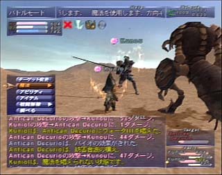 「楽な相手」だし、二人なら楽勝だね〜と思っていたら、なんと範囲沈黙の攻撃を喰らってしまいました(>_<;)。しかし、戦闘の終盤だったので何とかかんとか撃破に成功 :)。 |