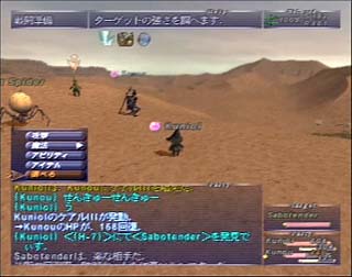 休息を取る戦士達の背後に忍び寄る影(*_*)!FF XIでは見慣れませんが従来のシリーズではどこかで見かけたことのあるシルエット・・・。 サボテンダーですっ。 |