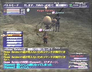 新種の怪しいクモを発見!戦ってみると・・・今までとは違う戦闘の曲でした(@_@;)。ジラートエリアは戦闘の曲が違うんですね〜♪ |