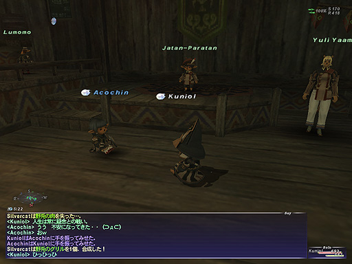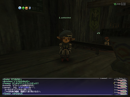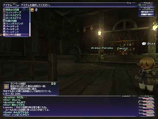 Salt of the Earthの人達と待ち合わせをして、ルモモちゃんがいるウィンダスのレストランに集合! だ、誰だ、女の子を不安に陥れたのはっっ。 |