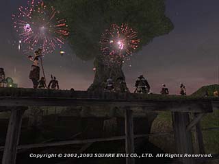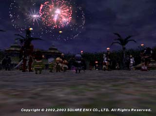 これは第二回盆踊りの様子ですね。そろそろ第三回が開催されますが・・・それだけ更新が遅れているって事ですな(;´ー`)。 第一回はユーザーの手によって開催されたらしいんですが、僕はその頃FF XIを熱心にやっていなかったのでスルーしてました(w。第二回はスクウェア様からのサポートもあり、花火が実装されました! |