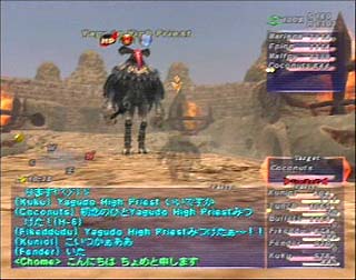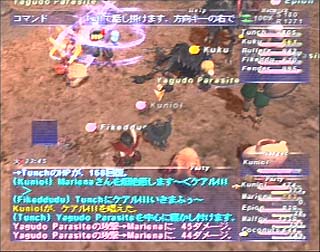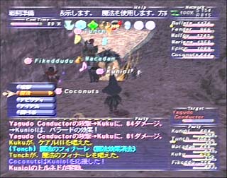 なんとか順調に倒し始めることができました。そんな時に黒魔法の「トルネド」をヤグードの一匹が落としました。僕にくれる優しいFenderさん。早速使ってみましょうっ。 |