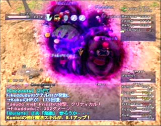 ンゴゴゴゴゴ・・・と、唱えている間にトイレに行けちゃうくらい長い詠唱が終わってトルネドが発動!スーパーど派手なエフェクトと共に敵のHPと僕のMPが豪勢に減ります\(^-^)/。見事に僕にタゲが来ました。 結局この日は取れませんでしたし、壊滅もしましたが、こういう所に来るのも楽しいですな♪ |