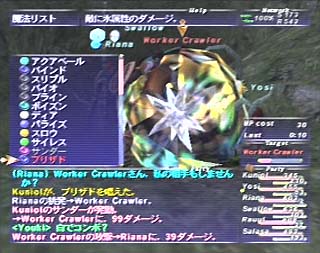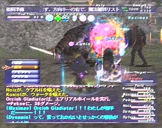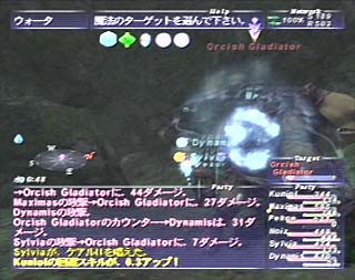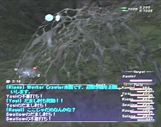 イモムシの必殺技で物理攻撃バリアーのようなものをしてきます。こうなると物理攻撃がほとんど当たらないので、黒魔の僕の出番! と思って魔法を連射しているとHateが上がってタゲられてしまうので、けっきょくしょぼしょぼ撃つしかないのでした・・・。 |