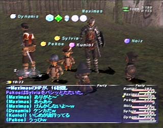 ジュノで誘って頂いたPTに入ってみると、構成メンバーの内4人がタルタル、あとはヒューム詩人(歌のお兄さん)のDynamisさんとヒュームナイト(園長)のMaximasさん。リーダーのMaximasさん曰く「マキ学園と名付けよう!」 なんて安直な、じゃなくて素敵な名前なんでしょう(^^)。 |