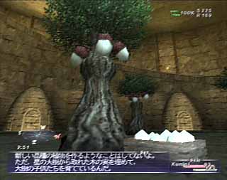 これは星の大樹と同じ種類の木だそうです。本当はこんな小さな木なのに、星の大樹のように大きく育ったのが奇跡とされているそうな。 星の大樹はBGMが素晴らしく、雰囲気も良いため、個人的には一番お気に入りの場所です(^^)。 |