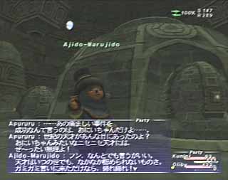こいつです!さり気なく口の院の院長だったのですね。兄妹で二つの院の院長をこなすとは・・・。 タルタルの中でも一際過激な人のようで、獣人を強力な魔法で一掃しようとしています。 ウィンダスのミッションはこのアジド・マルジドと英雄カルハ・バルハのお話がメインのようです。 |