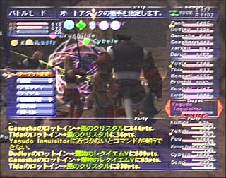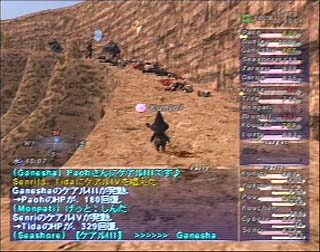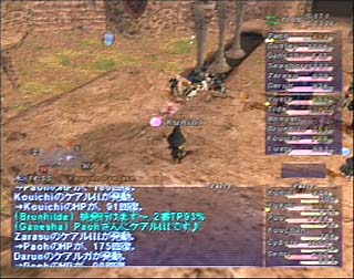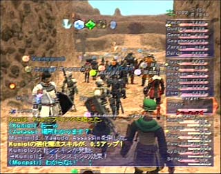 表示許容人数を遙かに超えてしまっているために、敵、プレイヤーキャラクター共にほとんど表示されず、状況の把握が極めて困難であります。どうもヤグードが大量リンクしているようなのですが、イマイチ解りません。死にそうな人に適当にケアルするのが精一杯であります。自分も激しく攻撃を喰らい、おどおどしてます。 |