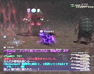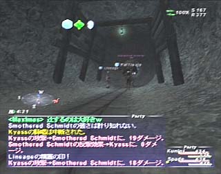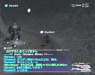 リアル友人で、Sirenサーバーに誘ってくれたSpadeさん。深夜〜早朝のジュノ下層で一緒にレベル上げパーティーを組もうか、ってことになったんですが、どうにも前衛系の人がいないのでプチお金稼ぎへ移行。グスゲン鉱山とか言うところに連れてきて貰いますた! |