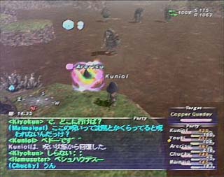 マウラに向かう途中にいた風エレを倒してみたり :)。お金稼ぎは一人でやるとちょっと悲しいですが、二人でやるとやっぱり賑やかで楽しいですの〜。 |