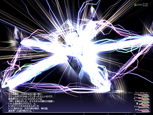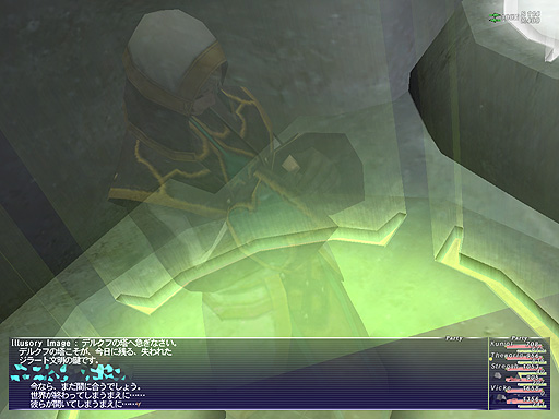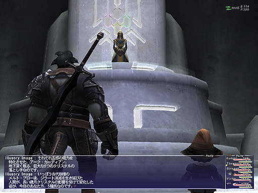 クリスタルに触れたジラートの王子は、真世界のビジョン・・・恐らく、カーバンクルや召喚獣達の言う本当の世界のビジョンを見たのです。彼をアンテナとし、ジラートの人々はその幻影に酔いしれ、自分たちもそこへ行こうとしたのです。 |