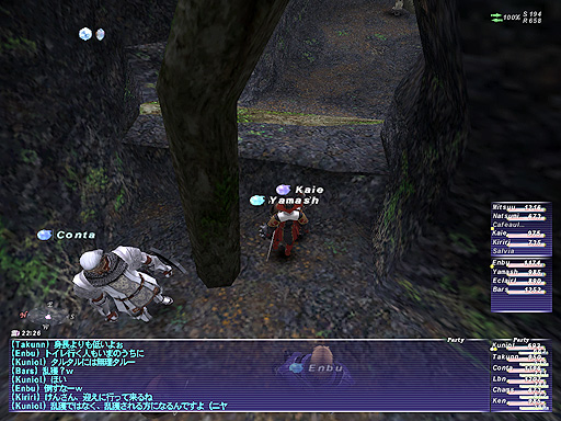 ご覧のスクリーンショットのように、ユタンガにはこのような段差があります。この段差の向こうにイフリートの釜の出口と石碑があるのですが、この段差は超える事ができません。しかし向こうからこちらに降りる事はできます。エスケプもテレポもない人が石碑を訪れた時に、イフリートの釜を再び通る事なく帰れるようにとのスクウェア様の意向なのでしょう。 この段差を使って、石碑に行く方法があるのです。 |