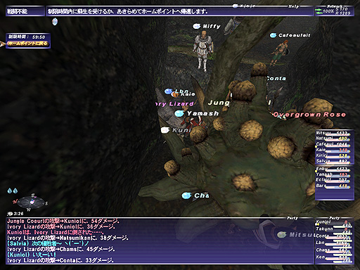 それは、段差の下にいる人達が自殺し、段差の上でイフリートの釜を抜けた人達に死体をトラクタで引っ張って貰って、そこで復活する、という壮絶な方法です(w。よくもまあこんな方法を思いつくもんです・・・。イフリートの釜でフルアラが全滅し、レイズもなしに途方に暮れて引き返すしかない状況に陥るよりかは、ローリスクで確実な成果を得られる方法であります。